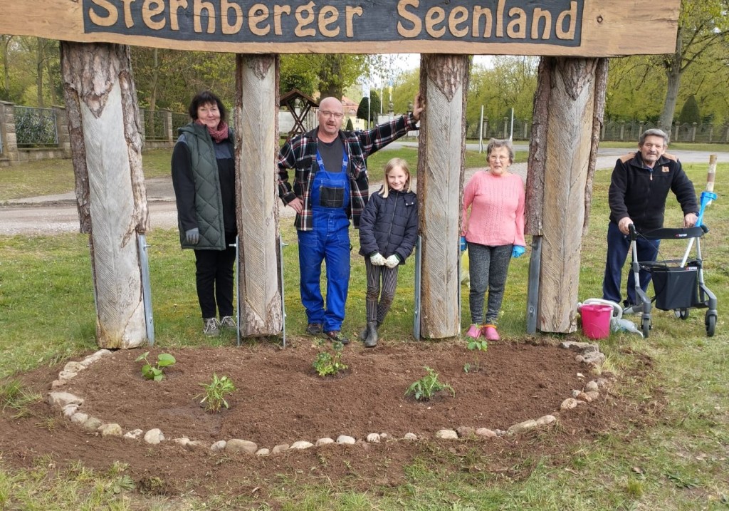 Unser besonderer Dank gehört den Bibower BürgerInnen, die uns mit Erfahrung, Pflanzenspenden und nicht zuletzt mit Hacke und Spaten, unterstützen!“